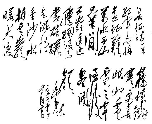 毛泽东的草书,下笔顿挫分明且颇有力度,行气十足,虽师法怀素、张旭和黄庭坚,却更加大气和酣畅:不论从结体章法上,还是运笔上都极其狂放和洒脱。