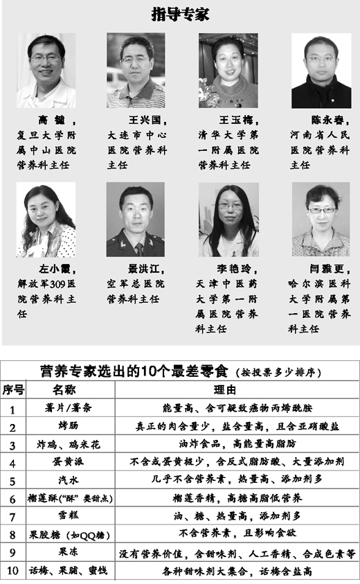为此,我们特邀请北京、上海、天津、大连、郑州、哈尔滨等地八位三甲医院营养科主任选出他们认为的最差零食,推荐他们常吃的健康零食,过一个营养健康的新年。