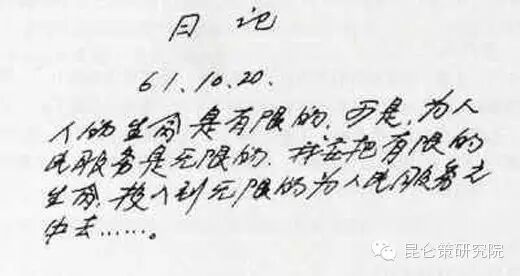 【编者按】1962年8月15日,年仅22岁的雷锋在一场车祸中不幸殉职。这位普通的解放军战士,虽然只有初中文化程度,但留下了几百篇闪耀着共产主义思想光辉,充满着理性思考的日记,那平实朴素而简练生动的语言,启发了一代又一代中华儿女,在自己有限的生命旅程中,追寻崇高的人生价值。——昆仑岩