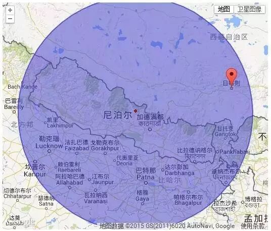 [ 4月25日尼泊尔发生8.1级地震,地震震中与我国日喀则地区距离425公里(图片来源:中国地震台网中心) ]