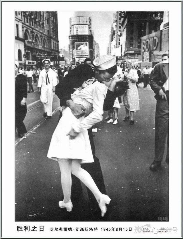 大名鼎鼎的《胜利日之吻》。据说是在1945年8月14日(北京时间8月15日)发生在纽约时代广场的一幕亲吻。时值日本宣布无条件投降,纽约民众纷纷走上街头庆祝胜利。一位水兵在时代广场的欢庆活动中亲吻了身旁的一位女护士,这一瞬间被《生活》杂志的摄影师阿尔弗雷德·艾森施泰特抓拍下来,成为传世的经典历史画面。 从此以后,每年8月14日都有数百对男女在时代广场重现“胜利日之吻”,以纪念二战结束。而事实上,据照片男主人公吉姆·雷诺尔斯回忆,这张照片拍摄于1945年5月,是摄影师阿尔弗雷德·艾森施泰特根据《生活》杂志老板的授意而拍摄的。从创意、构图,直至被吻护士小姐身体的姿态,都是经过精心策划的。不凑巧的是,这幅照片拍成后因种种原因未能及时发表,而在3个月后才公布于世,以至于造成季节服装与时代背景的错位。也是摆拍。