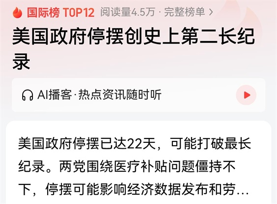 美国国内麻烦不断,其中最大的两件事情:一是政府停摆已经到第四周了,创史上第二长记录。停摆不仅仅意味着很多事情干不了,比如130万军人发薪水的问题;而且表明两党矛盾激化了极端程度,这对已经遭遇两次暗示的特朗普来说,很可能是致命的。