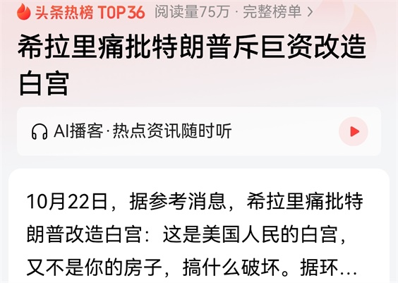 此举引来被特朗普打败的希拉里大怒,公开痛批特朗普改造白宫:这是美国人民的白宫,又不是你的房子,搞什么破坏?很可能,被拆的建筑,留下了希拉里不少身影!